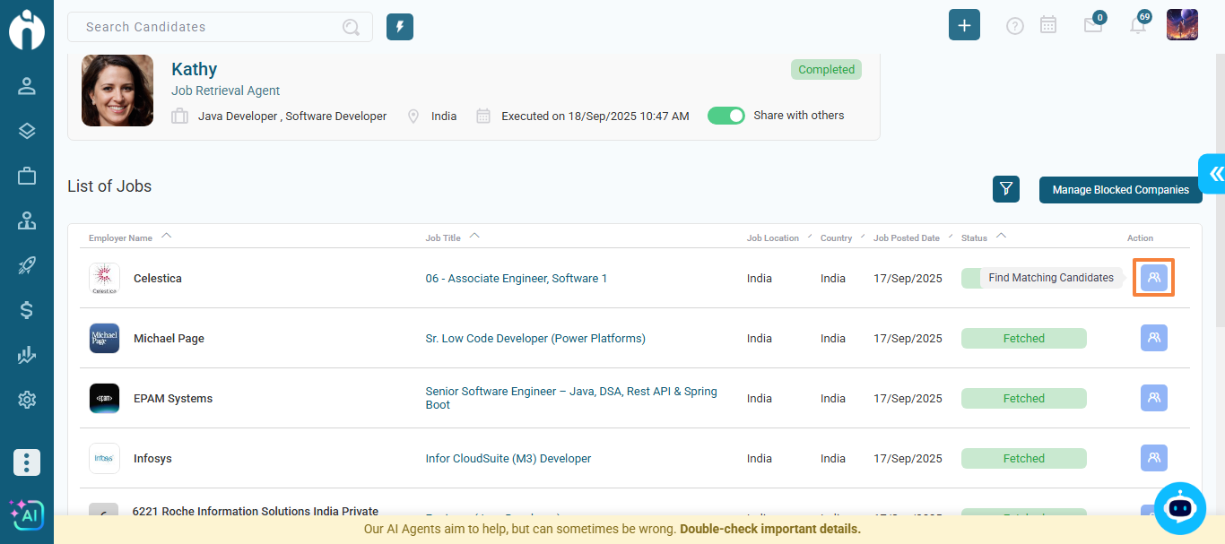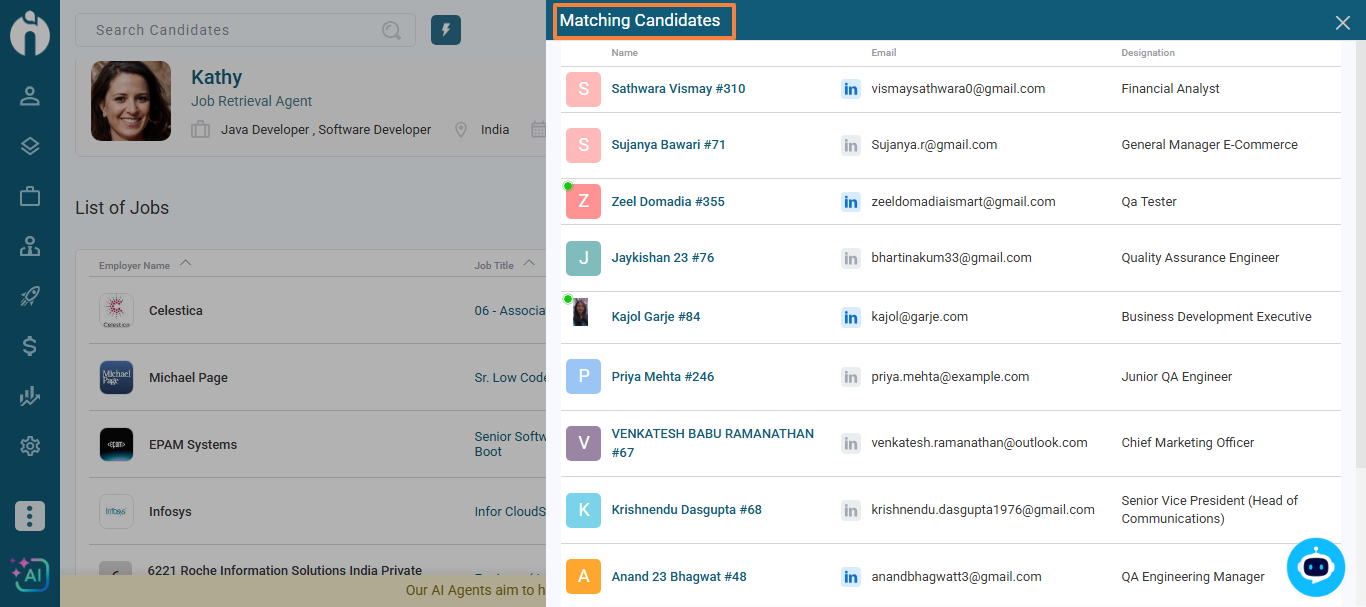 The Job Retrieval Agent (Kathy) is your smart assistant that automatically searches and retrieves jobs for you. Once you set your criteria, Kathy works in the background and notifies you whenever new matching jobs are found. This saves time and ensures you never miss relevant opportunities.