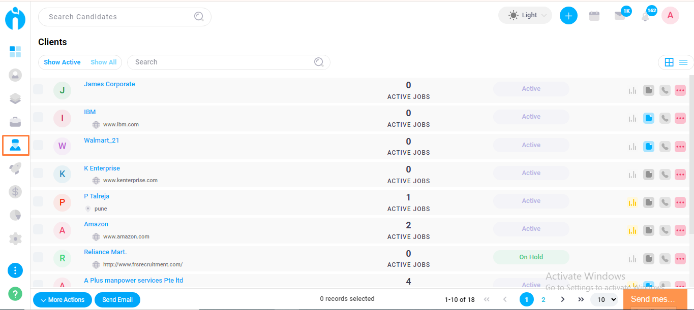 Note: The Client module is available in the Agency Setup of the system. For Corporate or Internal hiring setup, modules for Departments or Branches are available.