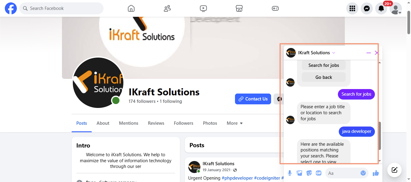 4. Once connected, candidates can engage with the chatbot via Facebook Messenger.
