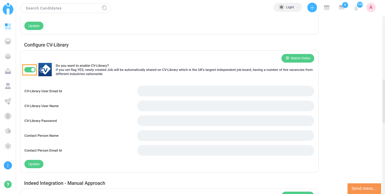Step 3: Select the option of, “Configure CV-Library”, and click on the switch to enable CV-Library.