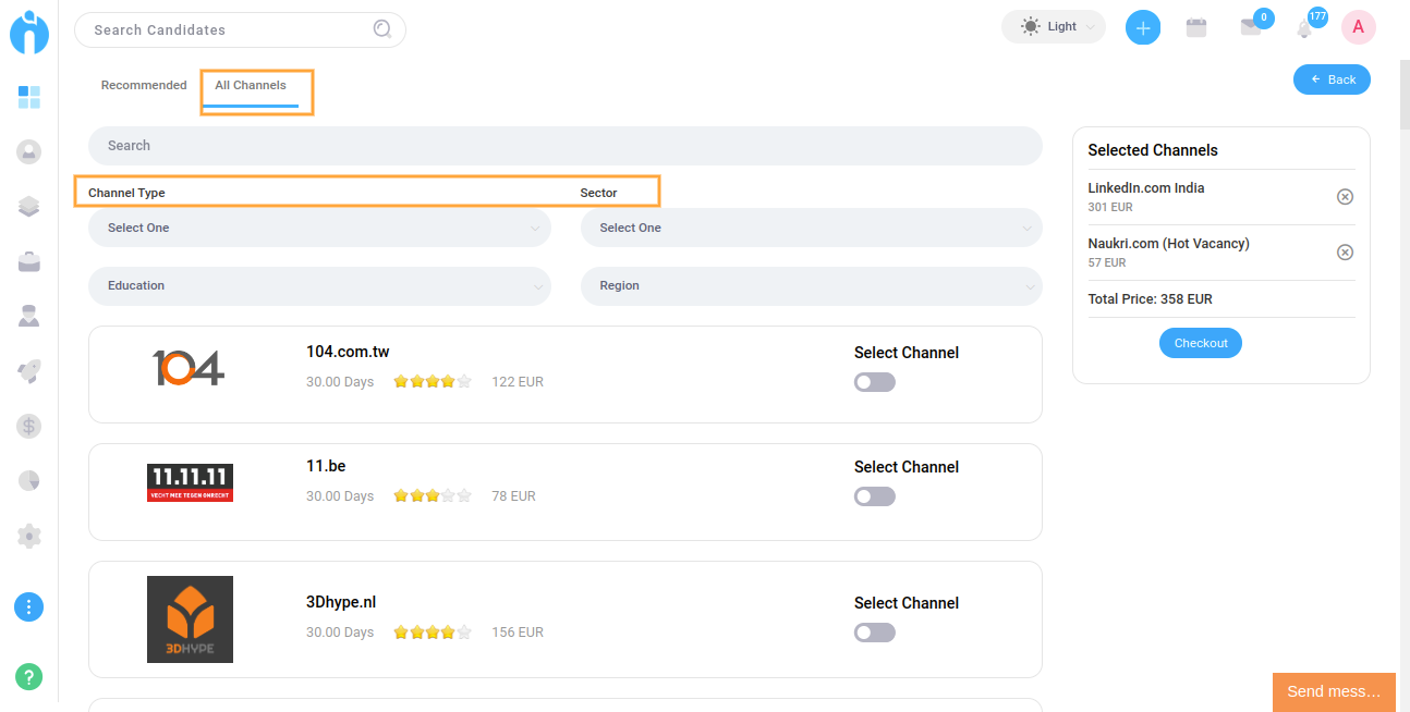 You can select and search for more Job Boards. Just click on All Channels, and you will see more than 2000 Job Boards. You can search for job boards by channel type and sector.